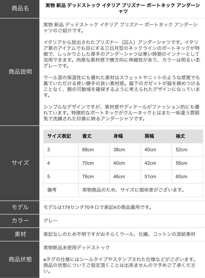 実物 イタリア プリズナー ボートネック アンダーシャツ 新品 デッドストック